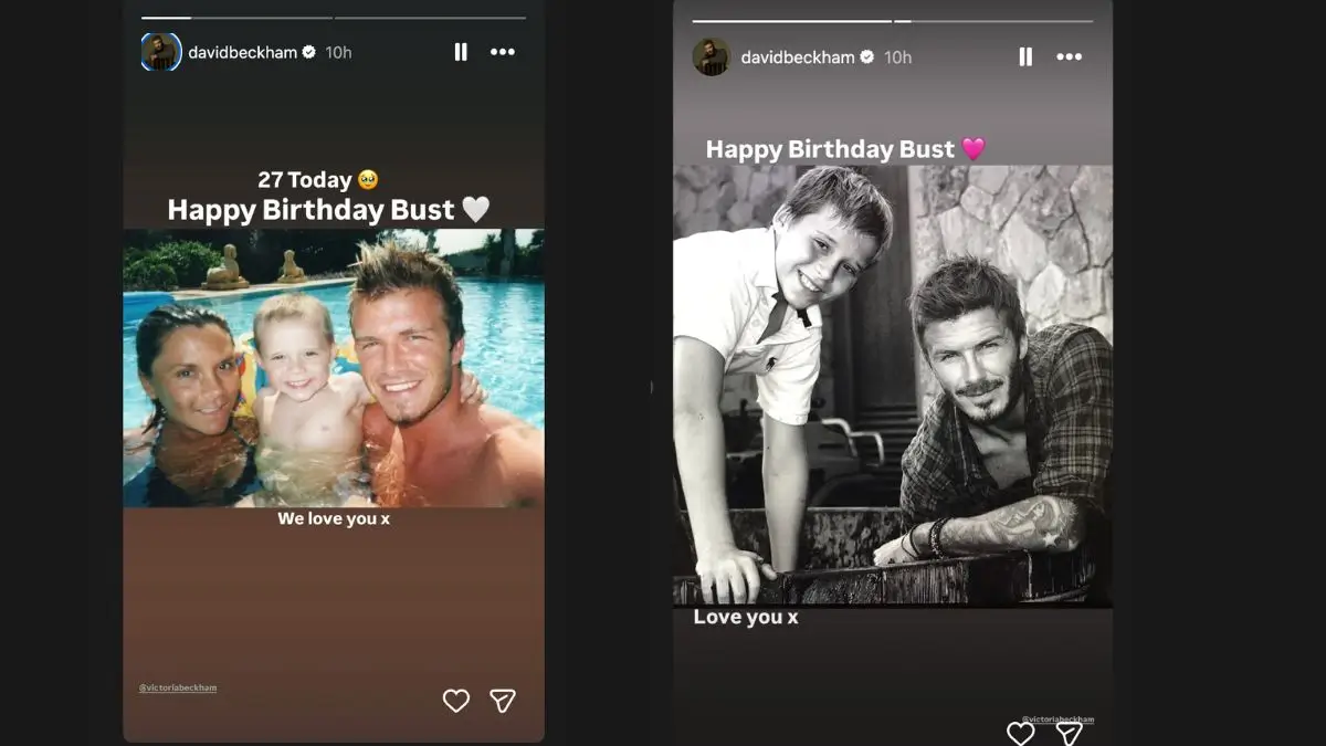 In a second image, a slightly older Brooklyn posed beside his father in a black-and-white photograph. David kept the message simple but warm, writing, “Happy Birthday Bust,” followed by a pink heart emoji and the words “Love you x,” while tagging Victoria in the post.