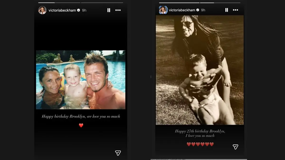 She later added a second image — a black-and-white photograph of herself holding Brooklyn as a toddler. Over the image, Victoria wrote, “Happy 27th birthday, Brooklyn. I love you so much,” followed by five red heart emojis. Victoria shared the same image last year to mark her son’s birthday.