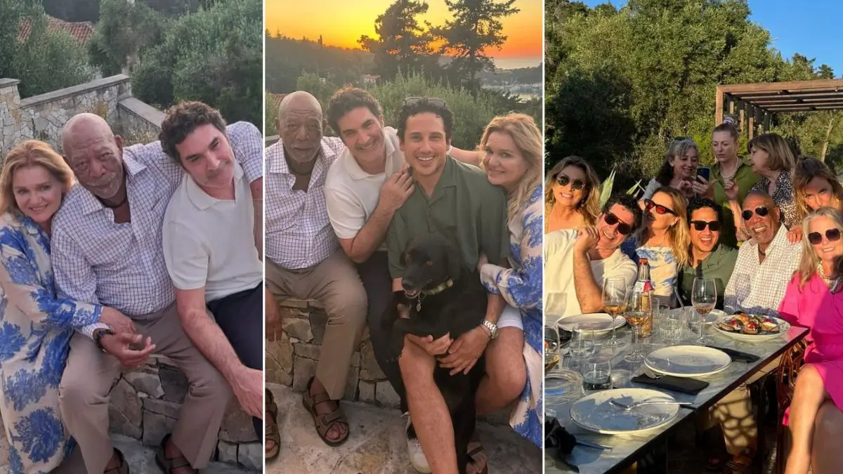 However, the recent photos from his Greek adventure tell a different story entirely. Freeman was photographed embracing the island’s natural beauty, dressed casually in a white checkered button up shirt, tan slacks, and sandals while enjoying intimate moments with his new Greek friends.